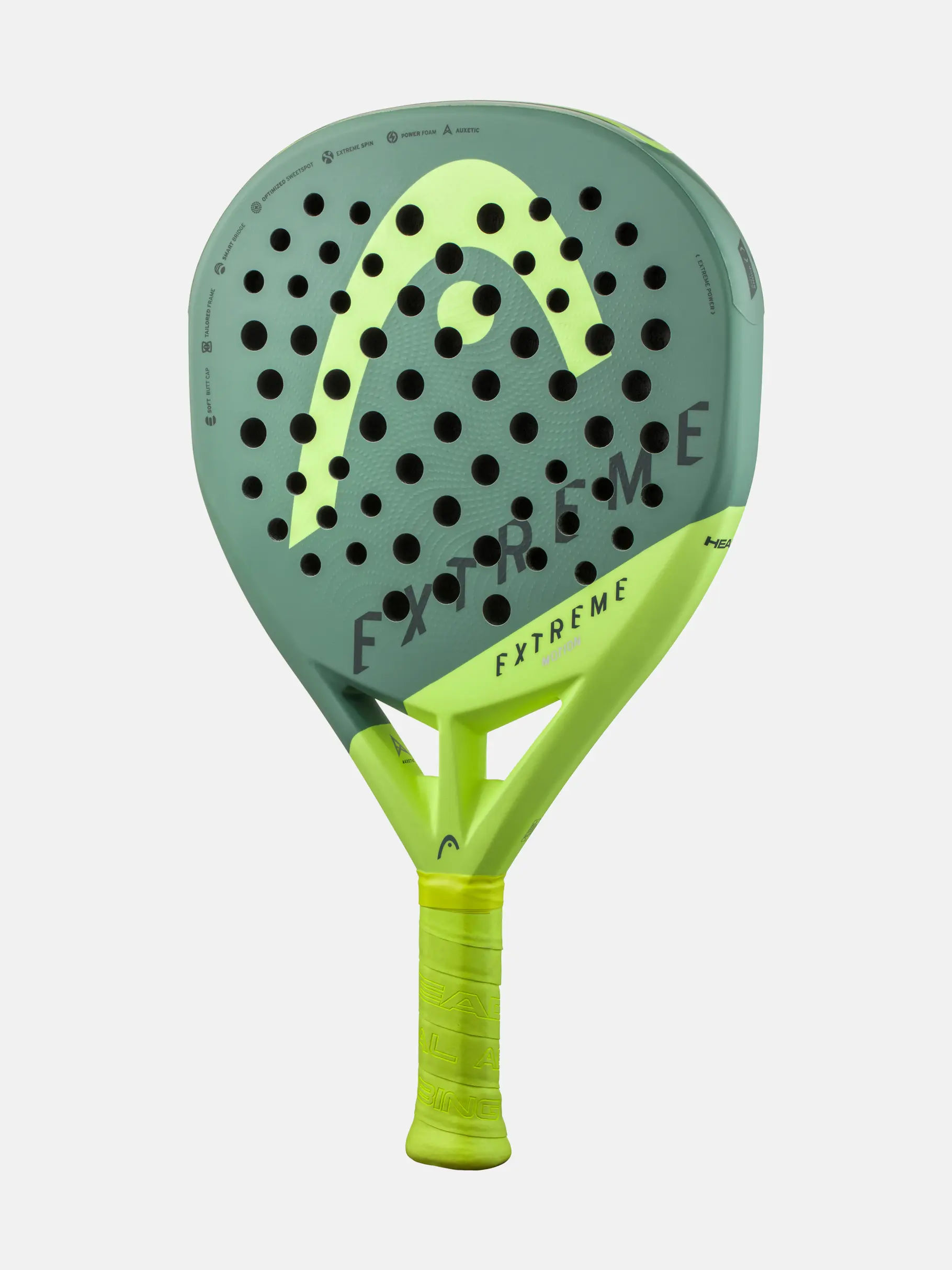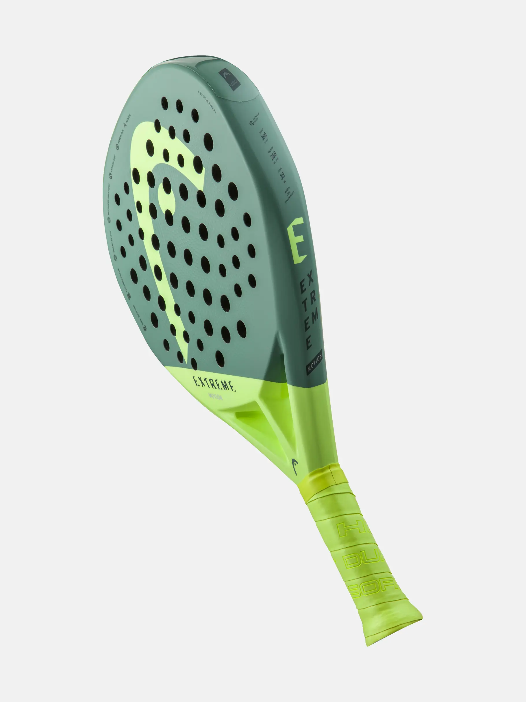 Made from a new, diamond-shaped mold, the EXTREME MOTION PADEL RACQUET is ideal for advanced and professional players who are looking for both extreme power and maneuverability. While the new Soft Butt Cap technology provides a softer playing feel and dampens vibrations, the innovative Auxetic technology delivers extra power and sensational impact feel. Lighter than the EXTREME PRO, the EXTREME MOTION has a hybrid woven hitting surface for enhanced power and touch, as well as Extreme Spin technology. The exclusive, colorful design adds to the racquet’s premium, contemporary appeal.